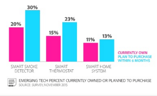 Wearable technology adoption rates are skyrocketing. The global wearables market is expected to reach $19B in 2018 – more than 10 times its 2013 value. IoT is also becoming more popular, particularly with connected home devices, with Adobe’s Digital Index Survey showing that over 50% of consumers have interacted with home electronic IoT devices.