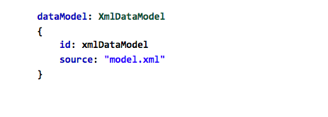 Returning to our QML, we would like a way to take that XML data and fill our ListView with it. It just so happens that Cascades offers the convenience of reading data straight from an XML file by way of the XmlDataModel. There are different types of data model but this one can be quickly created without having to write any C++ code, which makes it perfect for our example.